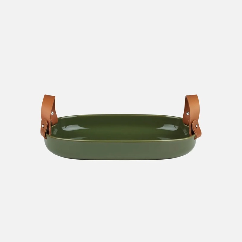 Deze Marimekko Oiva Koppa serveerschaal is gemaakt van keramiek met groen glazuur.
