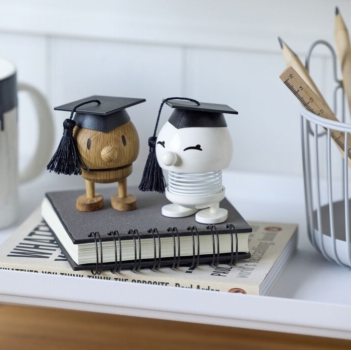 Voor een bijzondere gelegenheid een bijzondere hoptimist. Voor diegene die geslaagd is, of afgestudeerd of iets anders 'heel slims' heeft bereikt. De IQ hoptimist is een vrolijk aandenken aan een serieuze gelegenheid. Bumbles en Bimbles zijn de iconische poppetjes van het Deense merk Hoptimist. Let ook op de verschillen tussen Bumbles en Bimbles. Zo hebben Bumbles een kortere springveer, langere beentjes (symbool voor een broek), open oogjes en een puntje op hun kop. Bimbles hebben een langere springbeer (symbool voor een jurkje), kortere beentjes en lachende oogjes.