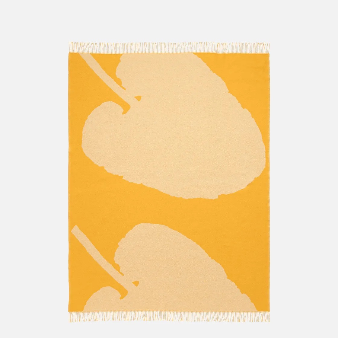 De plaid heeft franjes aan de uiteinden. De kleuren van het patroon zijn omgekeerd aan de andere kant van de deken.