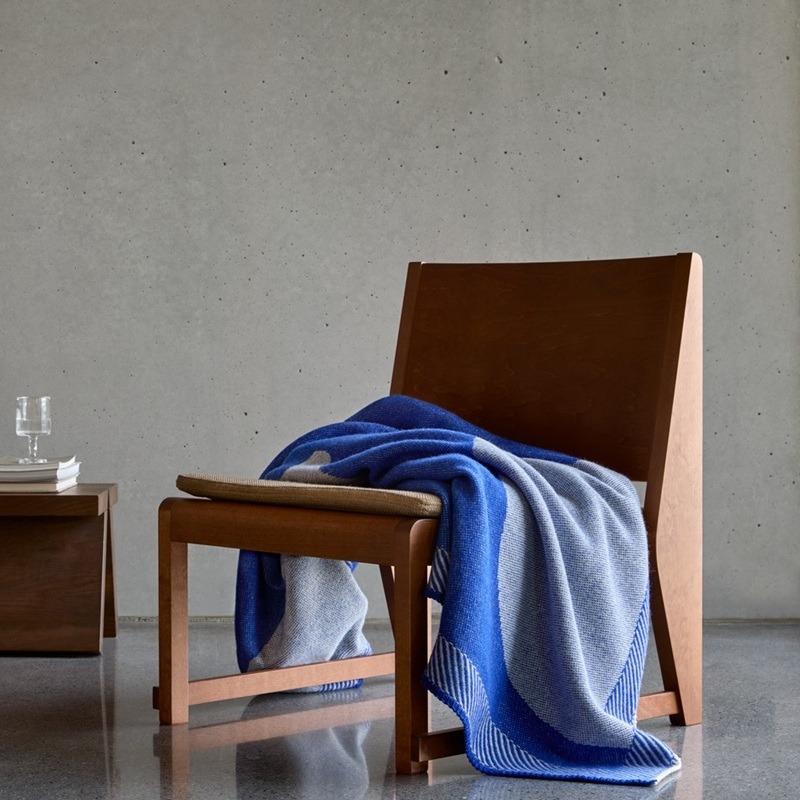 De Holiday Triptych-serie is een collectie plaids van lamswol waarbij elk ontwerp deel uitmaakt van een groter geheel. De tekening van "House on the Hill' verbeeld een verlangen naar de zomer, natuur, vrije tijd en zorgeloze vakantie, met een convertible en een strooien hoed..