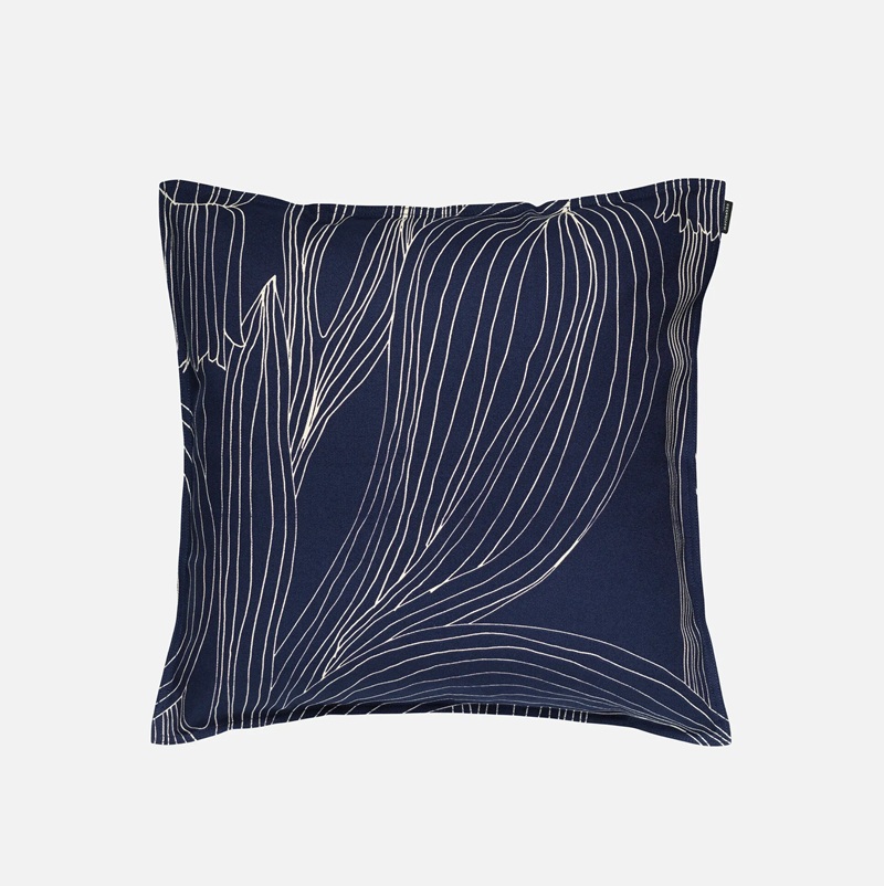 Kussensloop Kukat Puhkeavat heeft een rits aan een kant, en een smalle omgeplooide rand. De hoes is gemaakt van 100% organische katoen. Bij het maken van de kussenhoezen wordt de hele breedte van de stof gebruikt, en daaom is elk kussen anders en uniek. Het patroon 'Kukat Puhkeavat' is een ontwerp van Maija Louekari. Het betekent 'bloeiende bloemen' en onderzoekt het proces van de bloeiende bloemen vanaf het niveau van de hoogte van het gras, tot het speciale moment wanneer de bloem tot bloei komt. Het lijnen patroon geeft een streepjes effect waar rust van uitstraalt. Als je verder kijkt zitten er in het lijnenpatroon kleine oneffenheden, kenmerkend voor de groei in de natuur. Een moment lang is alles prachtig, maar zo vergankelijk. De wereld is vol met wonderen.