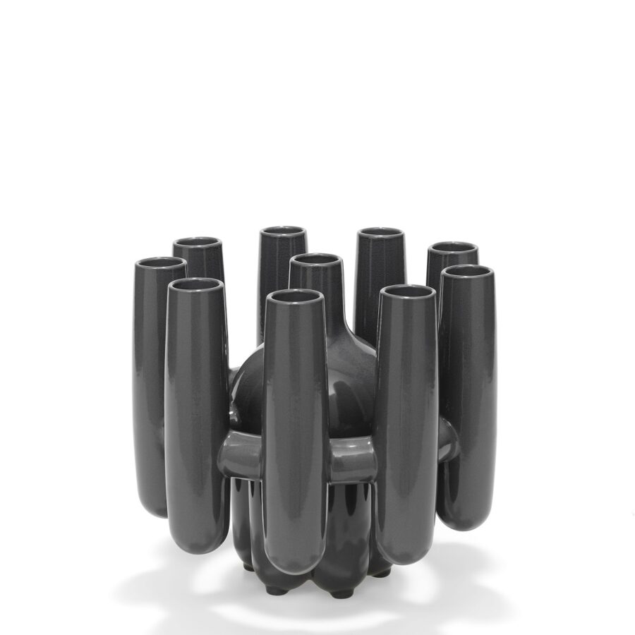 Colt is een stoere vaas waarbij 9 cilindrische vormen zijn gekoppeld aan een centraal reservoir.