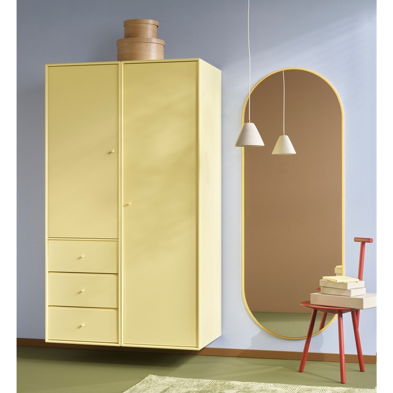 Deze kast bestel je vrijhangend of geplaatst op een plint. De plint heeft een hoogte van 7 cm. Een kast als dit is voor de meeste mensen voldoende voor hun kleding. Heb jij meer nodig, dan bestel je er een bij, of je zet er een ladekast naast of...Montana Selection is een deel van het programma van Montana waarbij we een kant en klaar meubel kunnen laten zien. Met het programma van Montana Furniture uit Denemarken zijn er echter eindeloos veel mogelijkheden. In de winkel hebben wij het tekenprogramma van Montana. Hiermee kan je op de computer je favoriete kast tekenen en eventueel bestellen. Hier hebben we ook de sample blokjes liggen, zodat je meteen de kleur en textuur goed ziet en voelt. Kaartjes van de kleuren mag je altijd mee naar huis nemen, zodat je de kleuren in je eigen interieur kan bekijken.