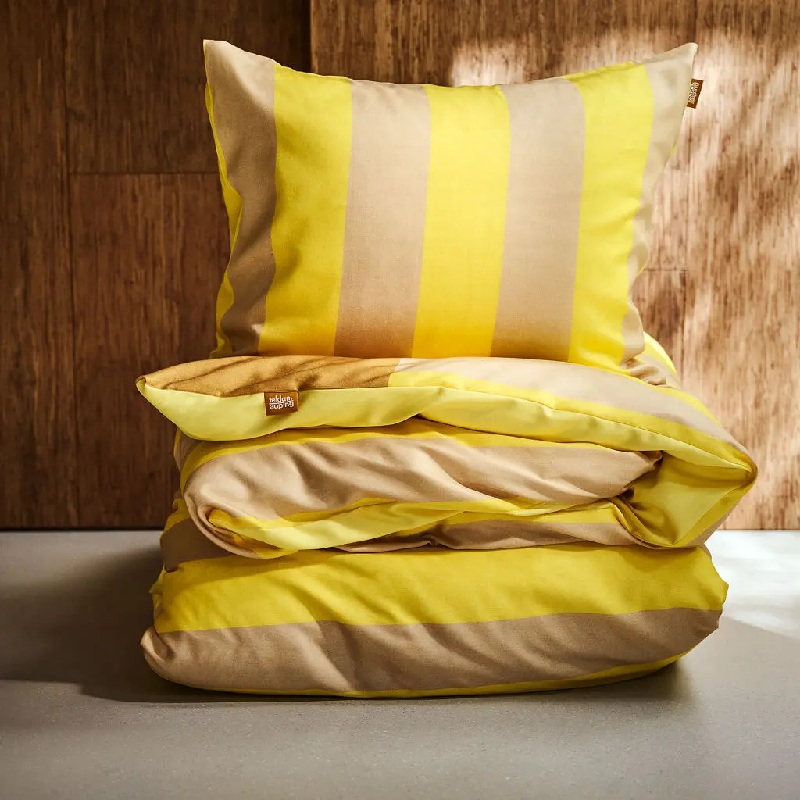 Dit limited edition dekbedovertrek is een exclusief ontwerp van design Tekla Severin. Dekbedovertrek Sunny Yellow is gemaakt van 100% biologisch katoen en voelt aan als een luxe hotelkwaliteit. Het overtrek heeft een dubbele, extra lange instopstrook en een totale lengte van 260 cm. Door deze extra lengte kan het dekbedovertrek gemakkelijk onder het matras worden gestopt en is het geschikt voor hoge matrassen. Het dekbedovertrek is passend voor dekbedden van 200 cm, 210 cm of 220 cm. De kussenslopen zijn voorzien van een dubbele hotelsluiting.