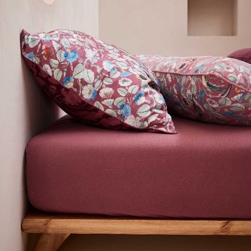 Het ESSENZA Aleste dekbedovertrek laat een elegante en levendige samenstelling van flora en fauna zien. Gemaakt van heerlijk zacht katoen satijn (100% biologisch katoen) en uitgevoerd in Mauve, is dit roze GOTS gecertificeerde dekbedovertrek niet alleen goed voor je huid, maar staat ook voor een verantwoorde productie. Keer Aleste om voor een verrassende twist en ontdek de print in silhouet voor een speelse, unieke look. De randen van dit dekbedovertrek en de kussenslopen zijn omlijst met een elegante piping om het helemaal af te maken. Dankzij onze extra lange instopstrook maak je je bed eenvoudig strak en netjes op.