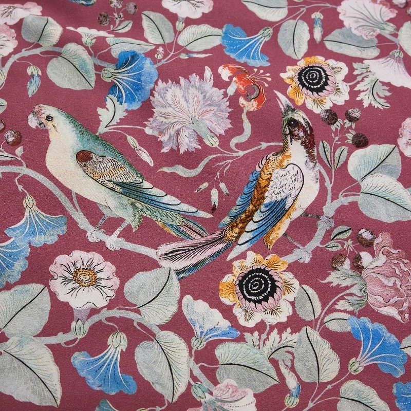 Op de zachte achtergrond van de Aleste springen delicate bloemen in tinten van zachtroze, lichtblauw en roomwit in het oog. Verschillende vogels zitten op de takjes te midden van de bloemen en blaadjes, waardoor er een natuurlijke en bijna poëtische scène ontstaat. De subtiele schaduwen en zachte contouren van de bloembladen geven de compositie een dromerig gevoel