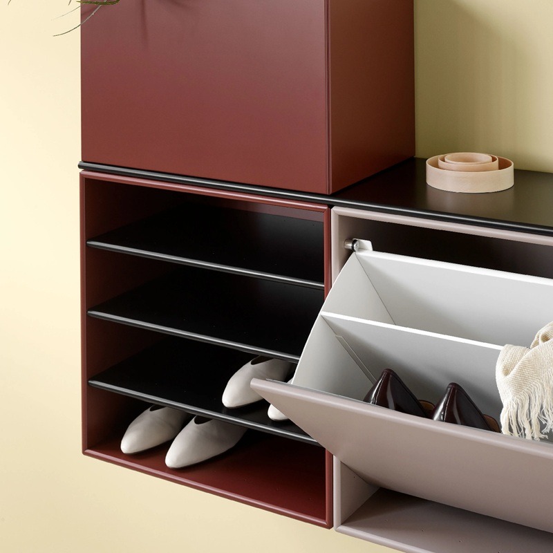 Onze showroommodel schoenenkast mag de winkel uit. We hebben er twee in de kleur Nordic, en een in de kleur Beetroot. Deze kast is een klepkastje, wat schuin naar voren komt, de schoenen passen daar dan precies rechtopstaand in. Kom je even kijken?