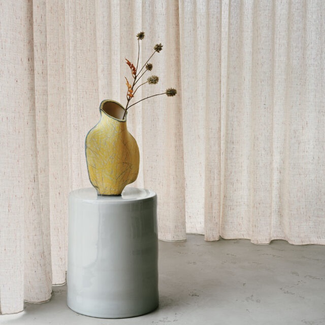 Kamerhoge inbetween gordijnstof gemaakt met een groot aandeel wol. De bijzondere garens met het subtiele spikkeleffect geven deze stof een charmant uiterlijk.