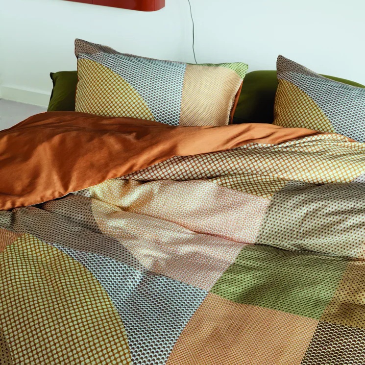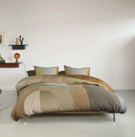 Maak je bed een statement met het Fifth Avenue dekbedovertrek van Beddinghouse Dutch Design! Dit overtrek is een speelse mix van verschillende patronen en subtiele microstructuren die elkaar perfect aanvullen in warme aardetinten. De geometrische vlakken en zachte cirkels vormen een stijlvolle puzzel die je bed meteen laat opvallen. Draai het overtrek en de kussenslopen om voor de effen achterzijde en creëer een hele andere look.