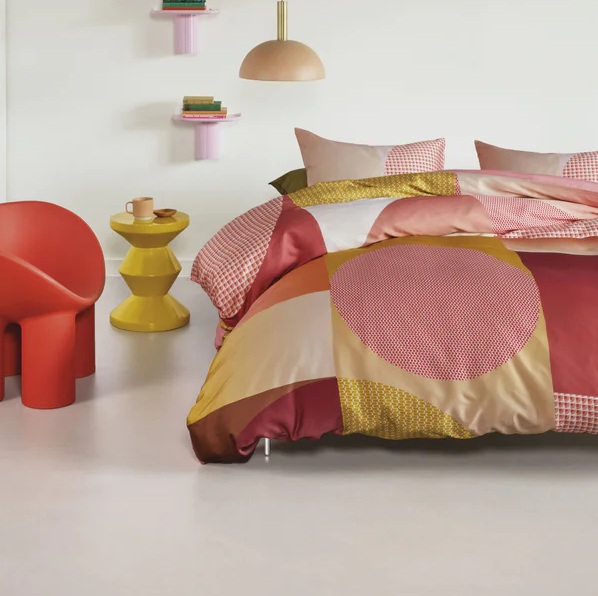 Het Sunset Boulevard dekbedovertrek van Beddinghouse Dutch Design is een echte blikvanger met zijn speelse mix van cirkels, geometrische vlakken en verrassende textuurpatronen. De warme tinten en creatieve vlakverdeling geven je slaapkamer direct een artistieke boost! Liever wat rustiger? Draai het overtrek en de kussenslopen om naar de stijlvolle effen achterzijde. Dit Nederlandse design maakt van jouw bed hét middelpunt van de kamer!