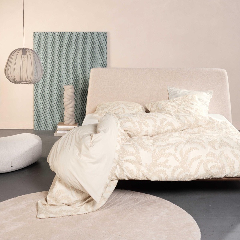 Dit Essenza dekbedovertrek Eleria brengt structuur en rust samen in een verfijnd ontwerp. Het dessin laat een ritmisch patroon van sierlijk slingerende blaadjes zien. De print oogt levendig maar blijft ingetogen, waardoor je slaapkamer een natuurlijke en gebalanceerde uitstraling krijgt.