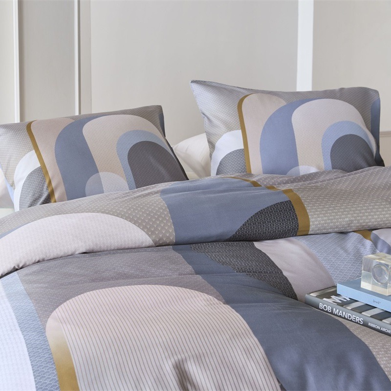 Dekbedovertrek Archi valt op door zijn grafisch ontwerp met elegante bogen en fijne patronen in een frisse, koele kleurstelling. De gelaagde vormen creëren een luxueuze, bijna architectonische uitstraling die perfect past in een moderne slaapkamer. Met de effen achterzijde kies je gemakkelijk tussen een rustige of expressieve sfeer. Dit overtrek voegt karakter toe aan je interieur zonder in te boeten op rust en balans. Je geniet van een stijlvolle nachtrust en wordt wakker in een ruimte vol design en sereniteit.