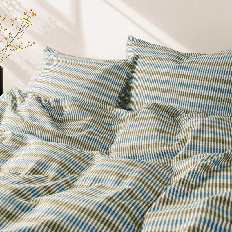 Dit dekbedovertrek is gestreept met verschillende kleuren, onder andere de kleur blauw. Een mooie en zachte uitstraling.