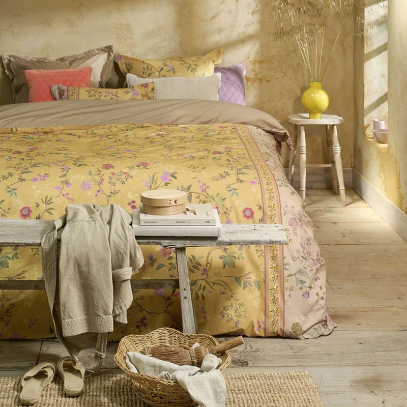 Het Bodhi Flower dessin bestaat uit sierlijke takken met rozen en fantasiebloemen, die doen denken aan een Indiase bloementuin. Het overtrek heeft verder een herhaald bloemenpatroon aan de zijkant. Sla je het overtrek om, dan heeft de achterzijde een sterrenprintje. Het overtrek en de kussens zijn luxe afgewerkt met een ronde bies en de hoofdkussens hebben een doorgestikte rand rondom. De hoofdkussens hebben gestoffeerde knopen waardoor deze, net als het dekbedovertrek, dubbelzijdig gebruikt kunnen worden. Dit geeft een speels mix&match-effect op je bed. Het beddengoed van Pip Studio is gemaakt van fijngeweven katoenperkal van 200TC. Dankzij de hoge draaddichtheid voelt deze stof stevig en ‘crispy’ aan en is het zachter en fijner dan normaal katoen. Het beddengoed heeft daarnaast een sterk vochtabsorberend vermogen en is koel om onder te slapen. Het dekbed heeft een instopstrook die lang genoeg is voor een boxspring en extra breed, zodat je het dubbelzijdig kunt gebruiken. Het lekkerste slaap je als je je mooie dekbedovertrek ook combineert met een mooi dekbed. Voor het beste resultaat laat je je even voorlichten in de winkel, om samen tot het perfecte dekbed voor jou te komen. Maar je kunt je ook even inlezen. Wormerveer is trouwens ook de moeite waard, wil je even ons leren kennen, en gezellig een rondje door de winkel komen doen? Check onze openingstijden en kijk ook even bij de website van indezaanbocht , voor leuke collega's en lunchtips. Voor een overzicht van onze collectie Pip Studio volg de link.