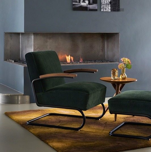 Deze fauteuil heeft uitstekende eigenschappen: hij is elegant, tijdloos en heeft een hoog zitcomfort. Bovendien is hij licht zoals alleen een sledestoel kan zijn. De eerste stoelen die in de jaren ‚20 van de vorige eeuw van stalen buizen werden gemaakt, waren nog nauwelijks gestoffeerd. In de Thonet-catalogus uit 1935 stond echter al een hele reeks volumineus gestoffeerde fauteuils en banken. Deze serie is waarschijnlijk ingeluid door de S 411, een eigen ontwerp uit 1932. Tegenwoordig is de fauteuil voorzien van een hoogwaardige stoffering met binnenvering. Er is een bijpassende voetenbank leverbaar.