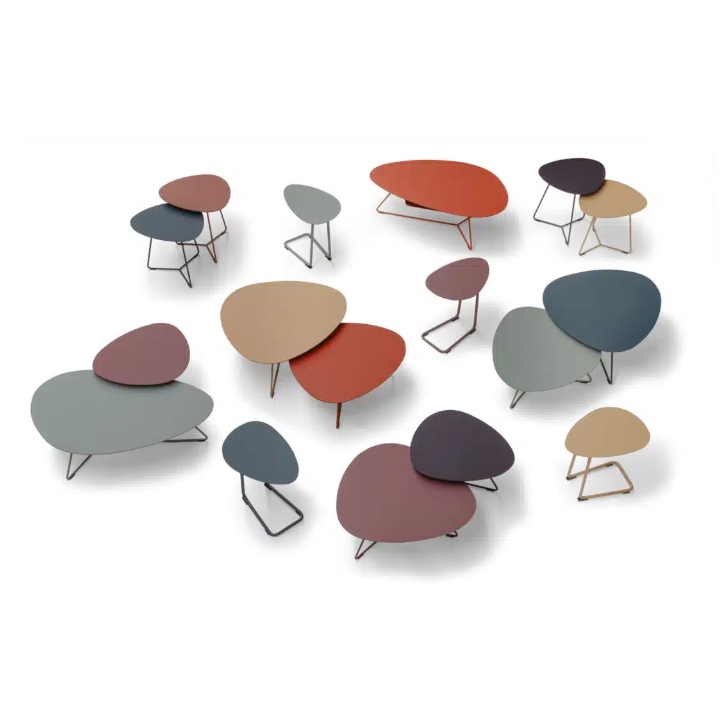 We hebben een aantal van deze serie salontafels in de winkel staan en ook de Cloudy salontafels vind je bij ons in de winkel én webshop. Een organisch en eivormig blad en een luchtig onderstel, een allemans vriend. Nu ook in leuke kleuren! Op onze webshop hebben we een aantal voorgestelde sets die je zo in je winkelmandje kan stoppen. Als je liever een combinatie wilt tussen twee verschillende materialen, andere kleuren of gewoon één losse salontafel, kom dan eens langs bij ons in de winkel. Kom je voor alle kleuren langs in onze winkel? De stalen vind bij ons en mag je eventueel ook even mee naar huis nemen.