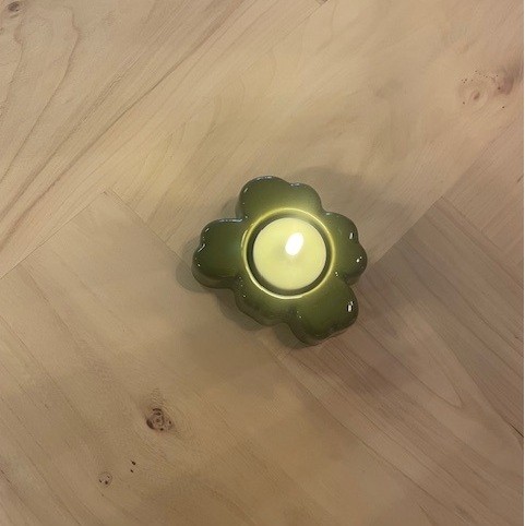 Deze leuke waxinelicht houder is gemaakt in de vorm van de Unikko bloem.