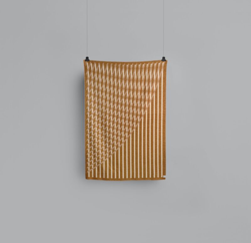 De inspiratie voor deze collectie komt van het fenomeen moiré. Een visueel effect wat verschijnt als twee patronen met bijvoorbeeld strepen boven op elkaar zijn geplaatst, waarbij de stof lijkt te bewegen. De strepen en figuren in het patroon verbinden met de lijnen en de snelheid zoals gevonden op een athletiek baan. Bislett, Oslo’s belangrijkste athletiek baan, is een bekend ijkpunt voor de ontwerper – Hallgeir Homstvedt.
