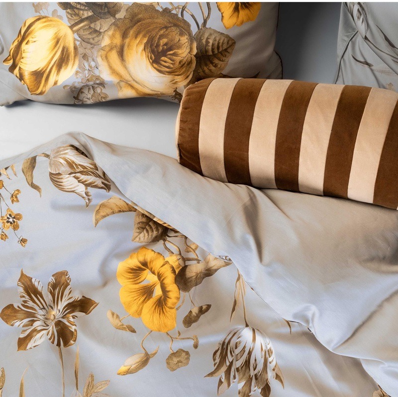 Het Essenza dekbedovertrek Florean in Grey is een zacht dekbedovertrek, uitgevoerd met een verfijnd two-tone bloemendessin dat lentefrisheid en ingetogen elegantie combineert. Dit bijzondere dessin is samengesteld uit bloemen afkomstig uit zes verschillende kunstwerken uit het Rijksmuseumarchief. In een luchtige, dynamische compositie komen onder andere sering, kamperfoelie, Oost-Indische kers, rozen en diverse tulpen tot leven. De rustige, tweekleurige opbouw geeft elk bloemblaadje en elke stengel ruimte om te schitteren.