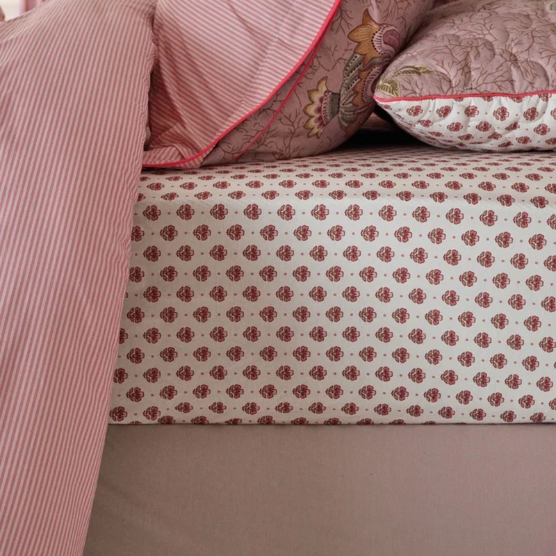 Met dit hoeslaken zit je altijd goed. Hoeslaken Jaipur Flower voelt zacht en comfortabel aan, perfect voor de nachtrust. Het dessin is een gestilleerde print, geĂ¯nspireerd op Indiase blockprint. Het hoeslaken is rondom geheel voorzien van elastiek en blijft daardoor goed om het matras zitten. Het hoeslaken is 35cm diep, waardoor het geschikt is voor zowel een gewone matras als een boxspring. Het hoeslaken is verkrijgbaar in meerdere kleurstellingen.
