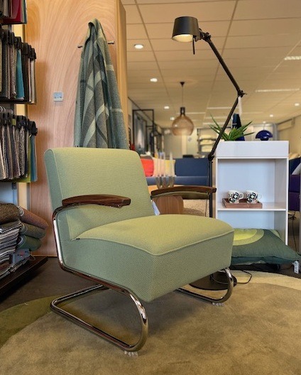 Deze fauteuil is leverbaar in vele stofsoorten en leer. Voor de keuze in kleuren en stoffen zien we je graag in onze winkel in Wormerveer.