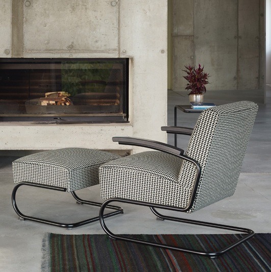 Deze fauteuil heeft uitstekende eigenschappen: hij is elegant, tijdloos en heeft een hoog zitcomfort. Bovendien is hij licht zoals alleen een sledestoel kan zijn. De eerste stoelen die in de jaren ‚20 van de vorige eeuw van stalen buizen werden gemaakt, waren nog nauwelijks gestoffeerd. In de Thonet-catalogus uit 1935 stond echter al een hele reeks volumineus gestoffeerde fauteuils en banken. Deze serie is waarschijnlijk ingeluid door de S 411, een eigen ontwerp uit 1932. Tegenwoordig is de fauteuil voorzien van een hoogwaardige stoffering met binnenvering. Er is een bijpassende voetenbank leverbaar.