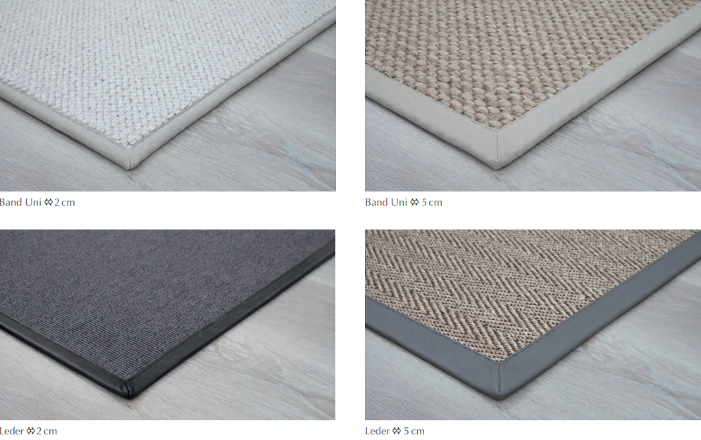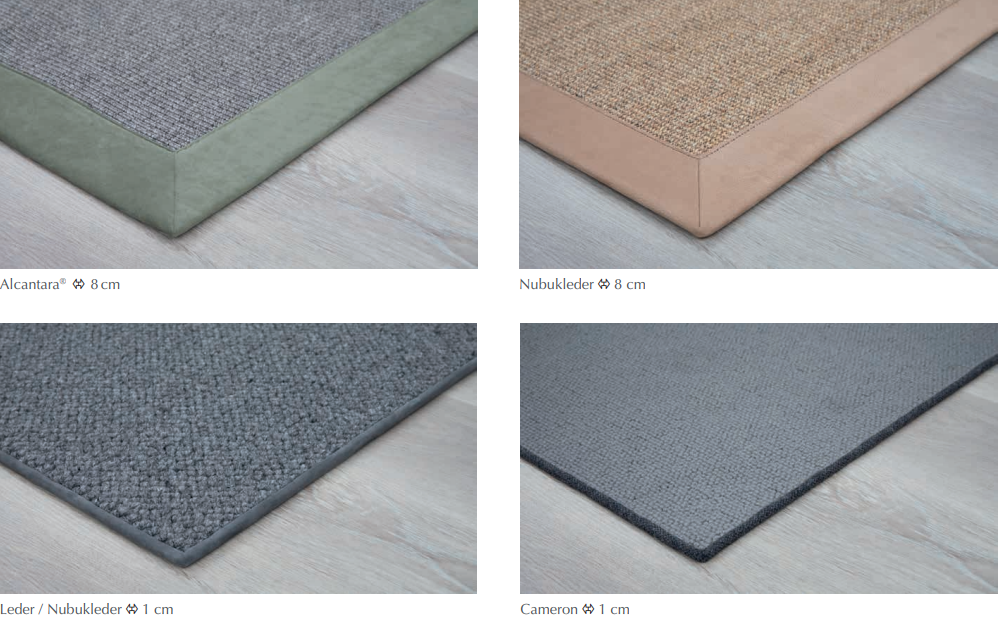 De vaste combinatie van de karpetkleur en de randkleur, zie je op onderstaande foto's.